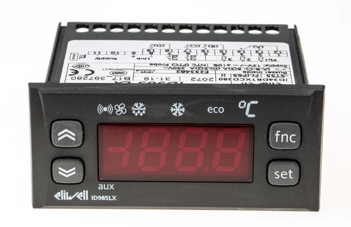 Eliwell ID985 LX là dòng bộ điều khiển điện tử thông minh chuyên dụng cho các hệ thống lạnh công nghiệp và thương mại. Với thiết kế hiện đại và khả năng lập trình linh hoạt, thiết bị này giúp kiểm soát chính xác quy trình làm lạnh, xả đá và vận hành quạt, đảm bảo thực phẩm hoặc hàng hóa luôn được bảo quản trong điều kiện nhiệt độ tối ưu nhất.